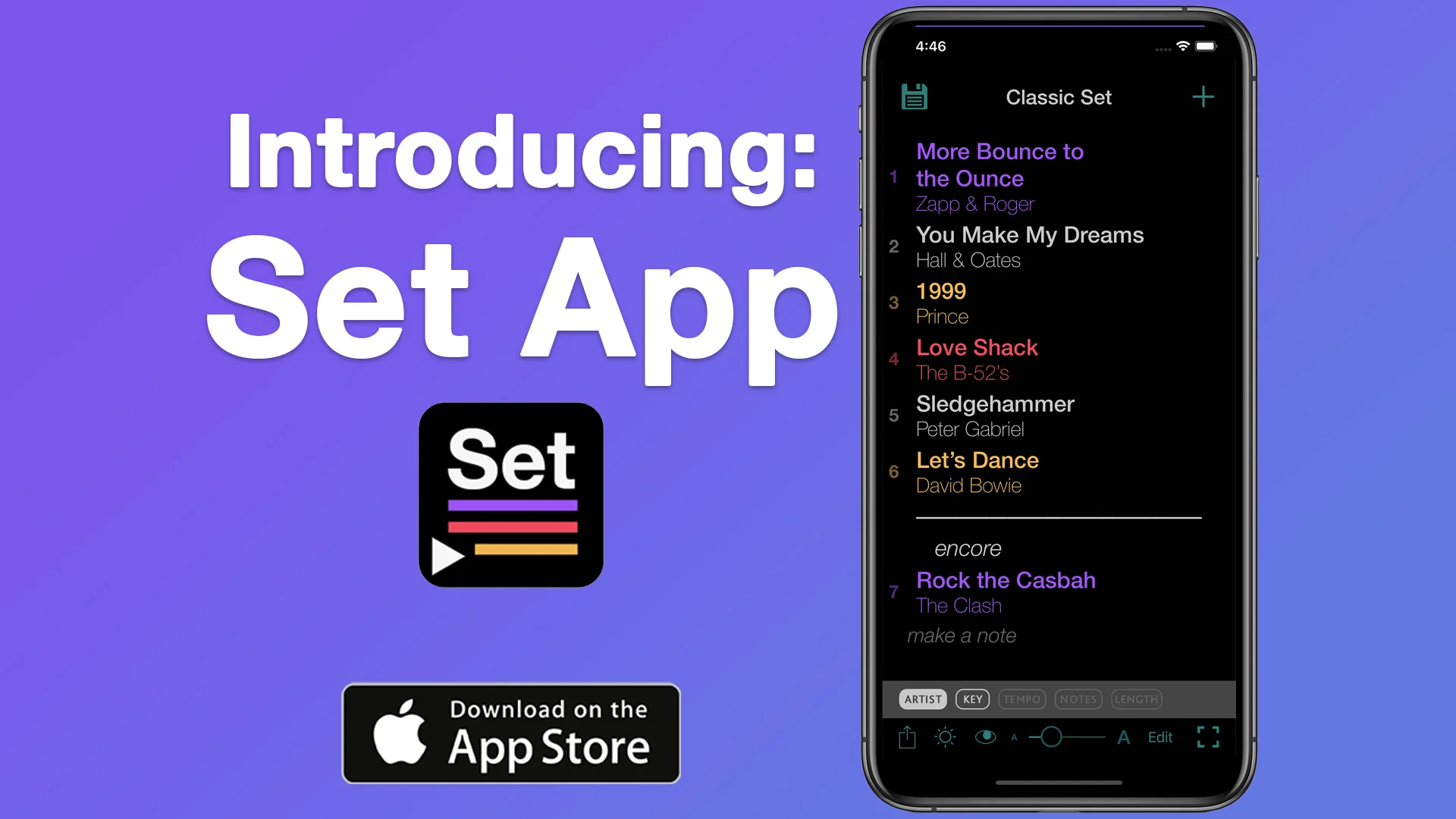 - Likewise, all changes are retro-active; If you change or add any song info you’ll see the changes automatically in all of your saved setlists, no matter how long ago you made or last opened it